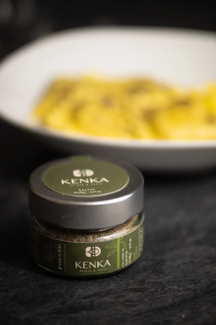 I ravioli al burro e Polvere di Salvia Kenka sono un primo piatto raffinato e semplice da preparare, perfetto per ogni occasione. La delicatezza del burro fuso si unisce alla profonda aromaticità della salvia, esaltata dalla Polvere di Salvia Kenka, che offre un gusto autentico e concentrato