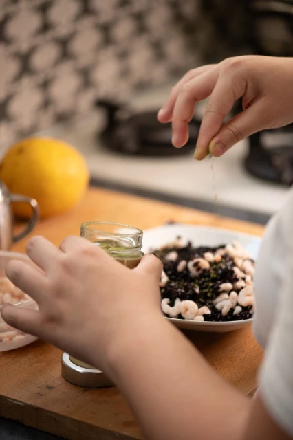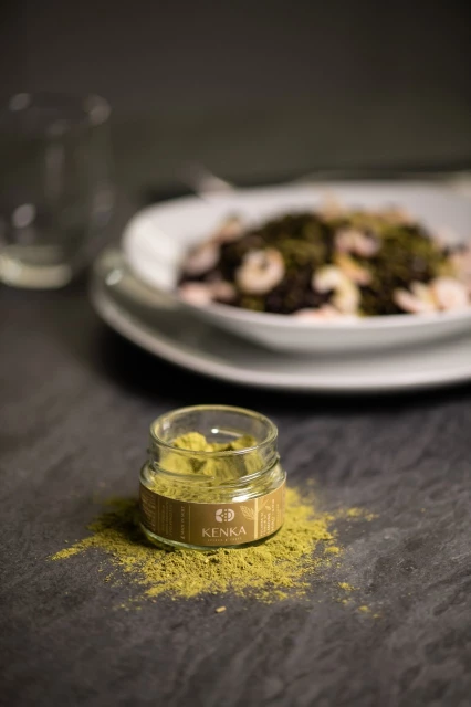 Il riso Venere, noto per il suo caratteristico colore nero e il suo sapore leggermente nocciolato, si sposa perfettamente con la delicatezza dei gamberetti. L’aggiunta della nostra Polvere di Foglie di Limone Kenka trasforma questa combinazione classica in un’esperienza culinaria straordinaria. La freschezza e l’aroma agrumato delle foglie di limone essiccate e polverizzate esaltano ogni boccone, donando al piatto un tocco innovativo e irresistibile.