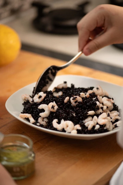 Puoi arricchire il piatto con verdure come zucchine o peperoni tagliati a cubetti e saltati in padella. Se preferisci un gusto più agrumato, aggiungi un po' di scorza di limone grattugiata prima di servire. Goditi il tuo riso Venere nero con gamberett