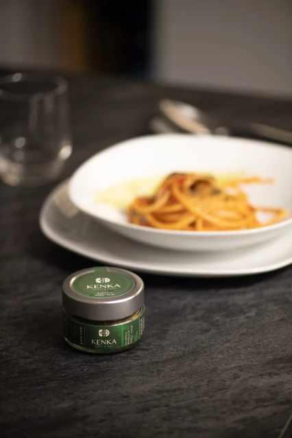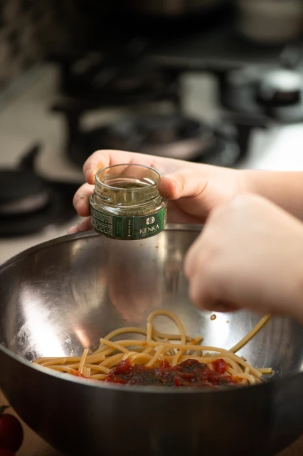 La Polvere di Basilico Kenka aggiunge una nota fresca e profumata che esalta il sapore del piatto, trasformandolo istantaneamente in sapore di casa.