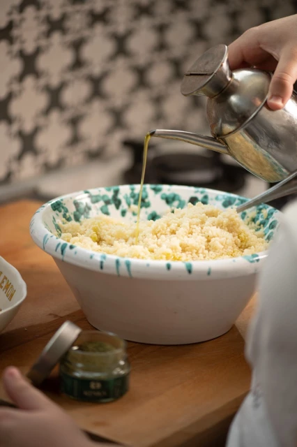 Segui le istruzioni sulla confezione per preparare couscous. Una volta pronto,sgranalo con una forchetta e lascialo raffreddare.